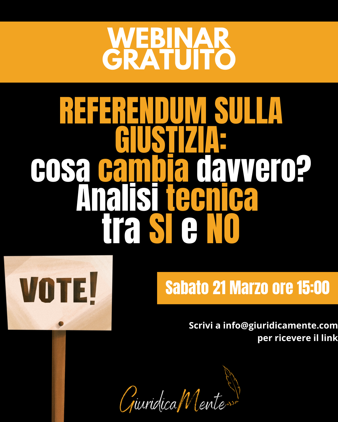 Per ricevere il link per partecipare a uno dei nostri eventi online, manda la richiesta a info@giuridicamente.com indicando il titolo del webinar che ti interessa